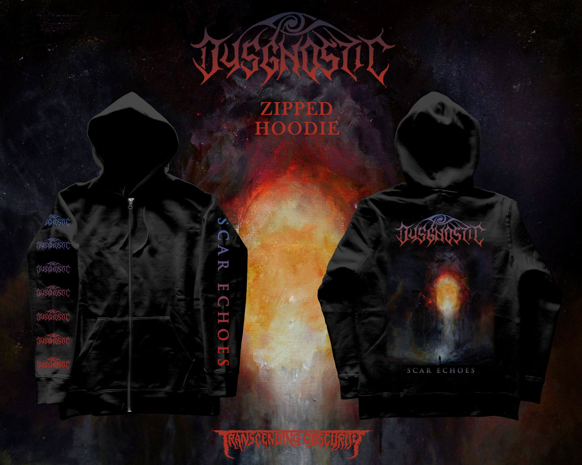 This is a high quality zipped hoodie for which we used specially made extra thick and soft cotton that is moreover pre-washed to avoid any shrinking issues. It has a long lasting metal zipper as well. There are prints on both the sleeves, one on the pocket of the band logo, and of course the gorgeous artwork print on the back that's made by Dawid Figielek.
