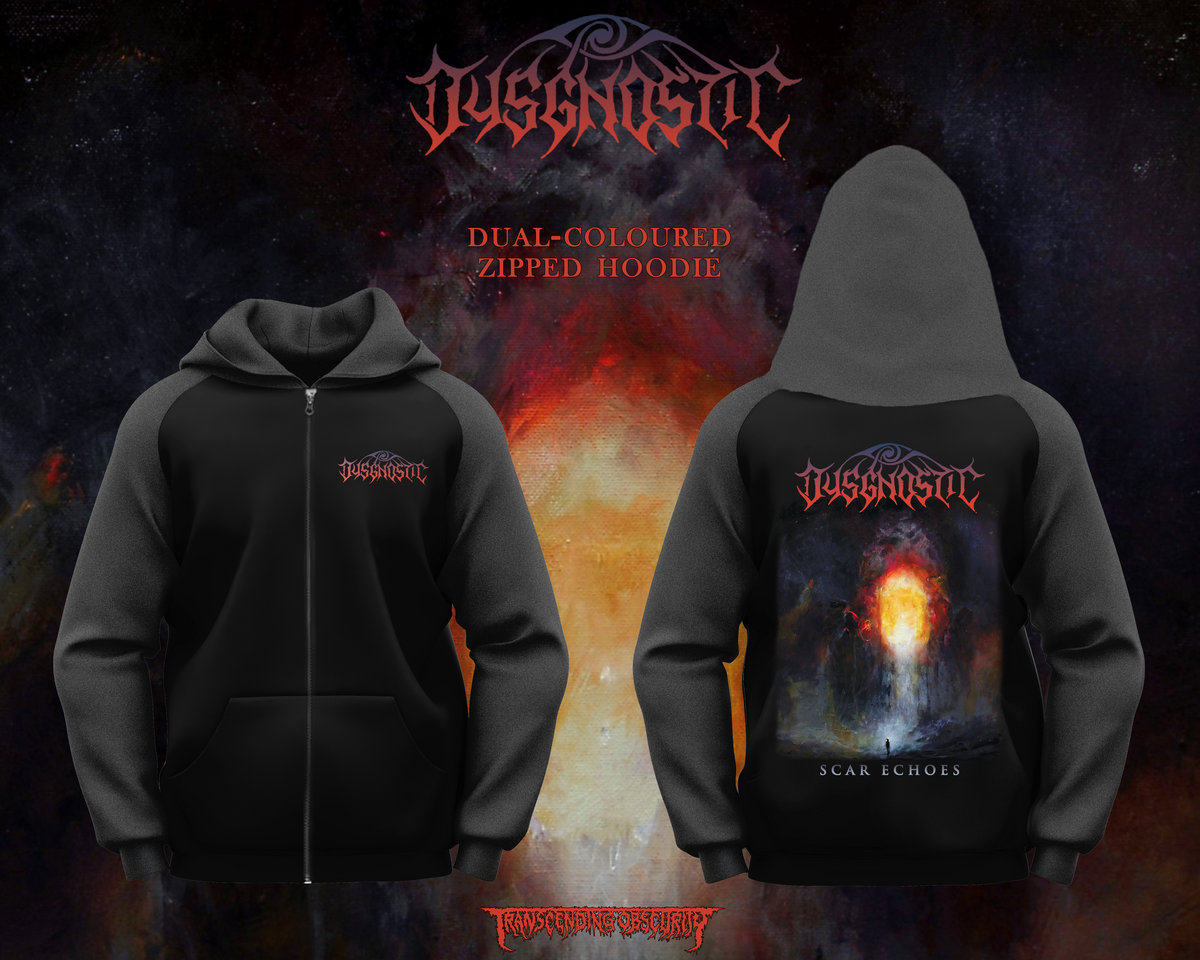 The dual-coloured hoodies for Dysgnostic have a carefully selected combination of dark grey mélange and black colour, which is only apt for their Dawid Figielek artwork. They are made of 100% cotton material that’s soft and fit great, and they’re prewashed to avoid any shrinking issues. They have a long-lasting YKK brand metal zipper.